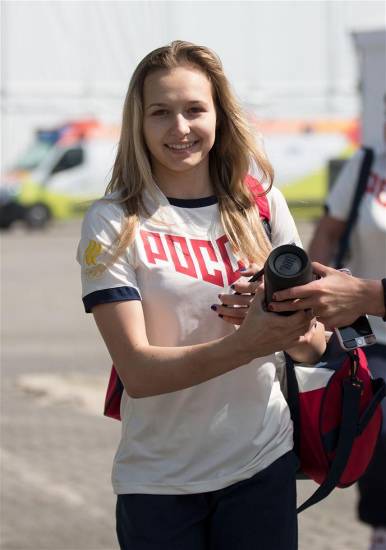7月26日,俄罗斯体操选手达里娅在训练后离开训练馆。 图片来源:新华网 新华社记者李明摄