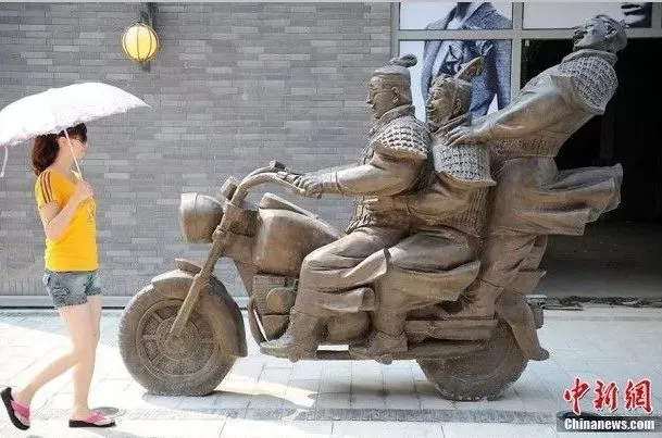 “最潮”兵马俑骑机车看美女