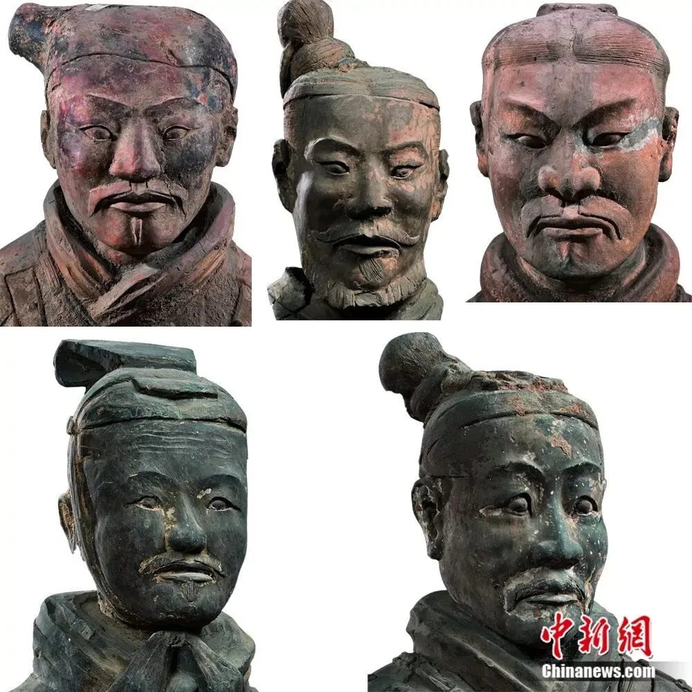 秦俑的制作者塑造了多种多样的典型人物,千俑千面,秦俑的面部特征可以归纳为目、国、用、甲、田、由、申风等八种基本脸型,也反映了中国人面部特征的共性。资料图