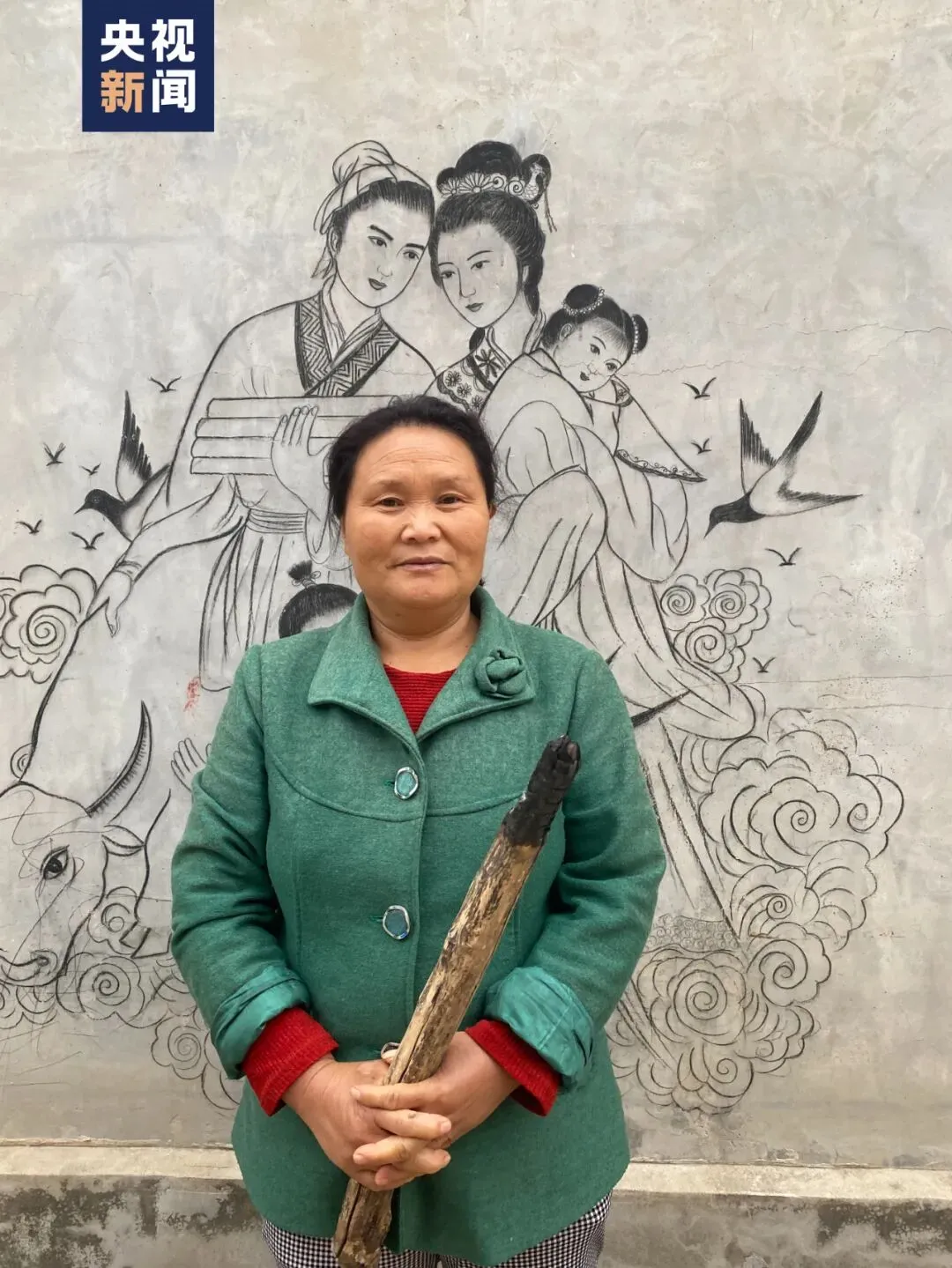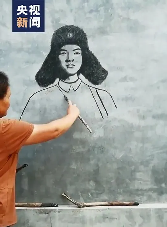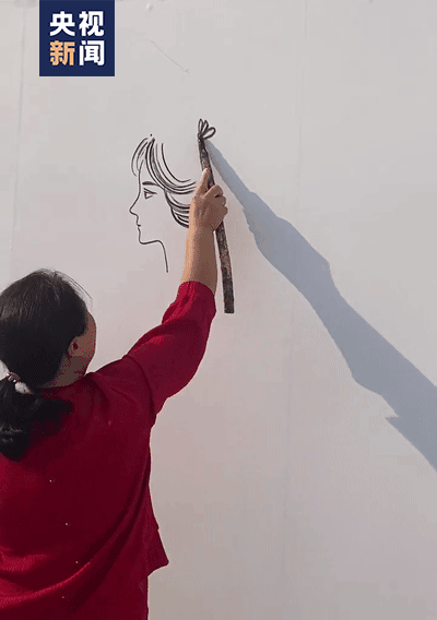 无意间将丁春梅拿烧火棍画画的视频