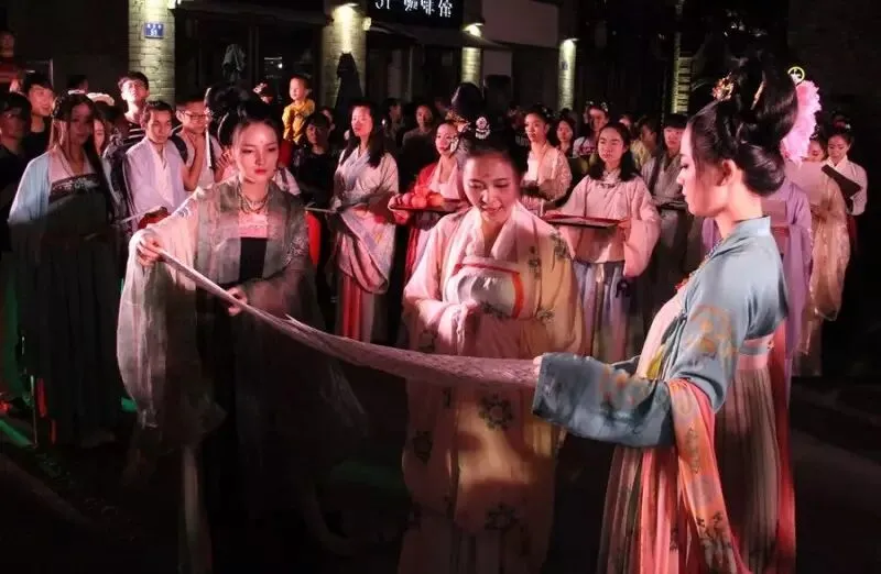 这是怎么回事呢?其实,当天是云南省汉服文化协会组织的七夕活动,近百名年轻人身着汉服来到钱王街的马家大院,体验传统文化、过“复古”七夕。现场都有哪些精彩的活动呢?一起来看吧!