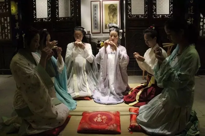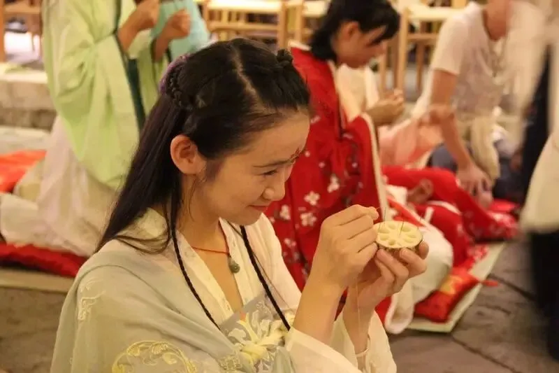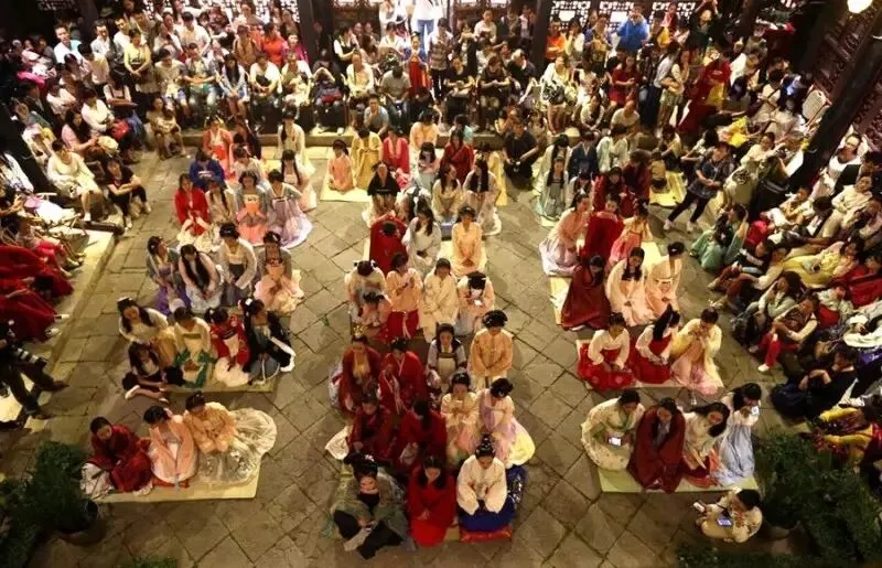 当晚,汉服爱好者们进行了茶艺表演、古琴演奏、越剧表演等等,一系列传统活动,吸引了众多市民“围观”和参与。