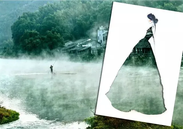 她身披优雅的礼服,在江南名楼滕王阁感受着“落霞与孤鹜齐飞,秋水共长天一色”的千古绝唱。