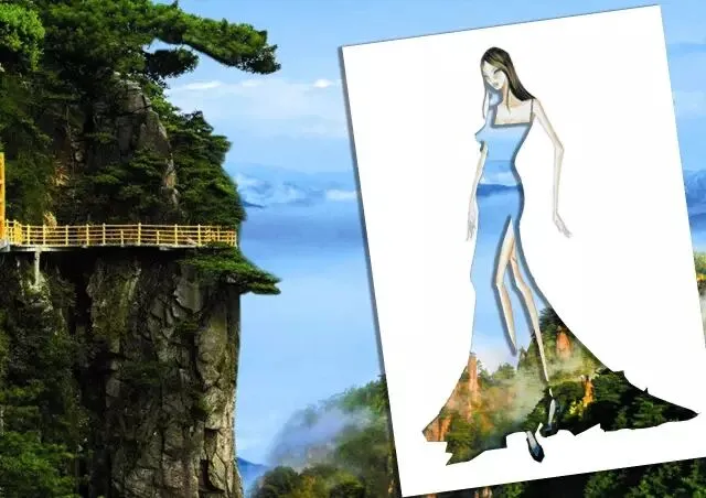 匡庐奇秀甲天下。山峦间烟雨弥漫,云光岚翠掩映,她身着短裙在锦绣谷看云海瀑布。