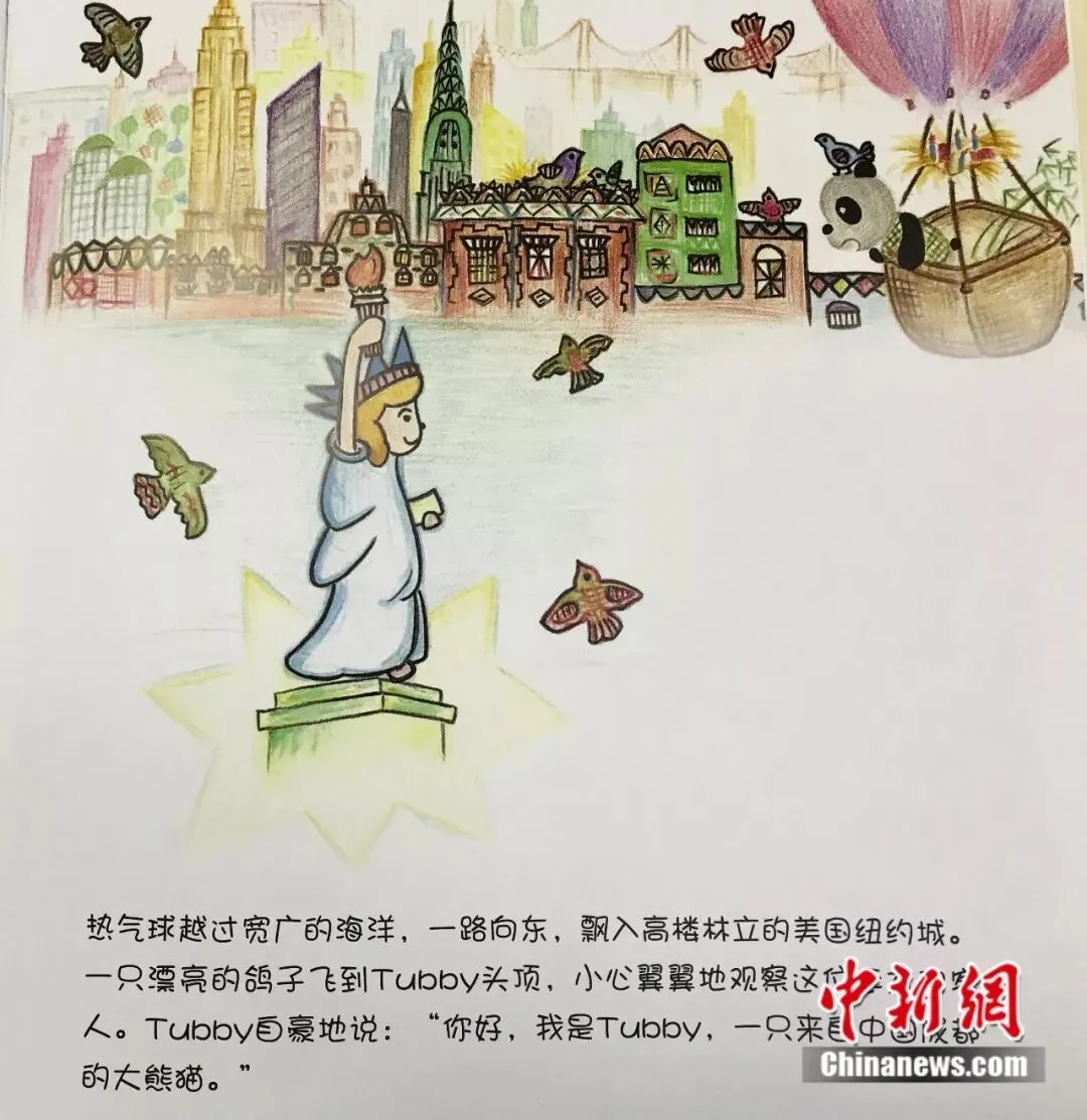 “Tubby是一只来自四川成都的大熊猫,会川剧的变脸、喷火,还会长嘴壶茶艺。它一直梦想着飞上蓝天,到外面的世界去看看……”这是成都“80后”姑娘周笠创作的绘本《大熊猫Tubby游世界》中的故事。