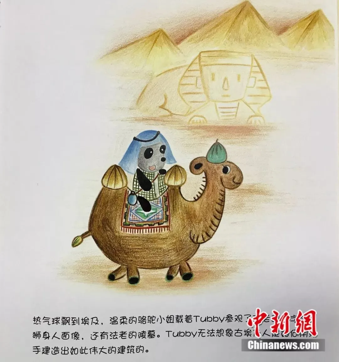 书里,憨厚可爱的大熊猫Tubby乘着热气球周游全球,它去到了美国、日本、韩国、澳大利亚、埃及等国家,不过最后它发现最想念的还是成都的麻辣火锅。