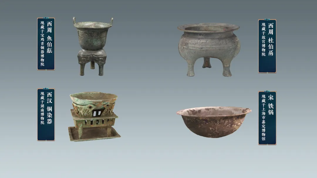 第二篇章,美食看古代。“食不厌精,脍不厌细”,中国人好吃、善吃,几千年来,食材在变,厨具在变,厨艺在变,那么,在通往美食打卡的路上,前人们都付出了怎样的努力呢?煮、煎、蒸、炒。先民们不同的烹调之法,用不同的烹饪工具,甗、簋、甑、篦知道怎么用吗?