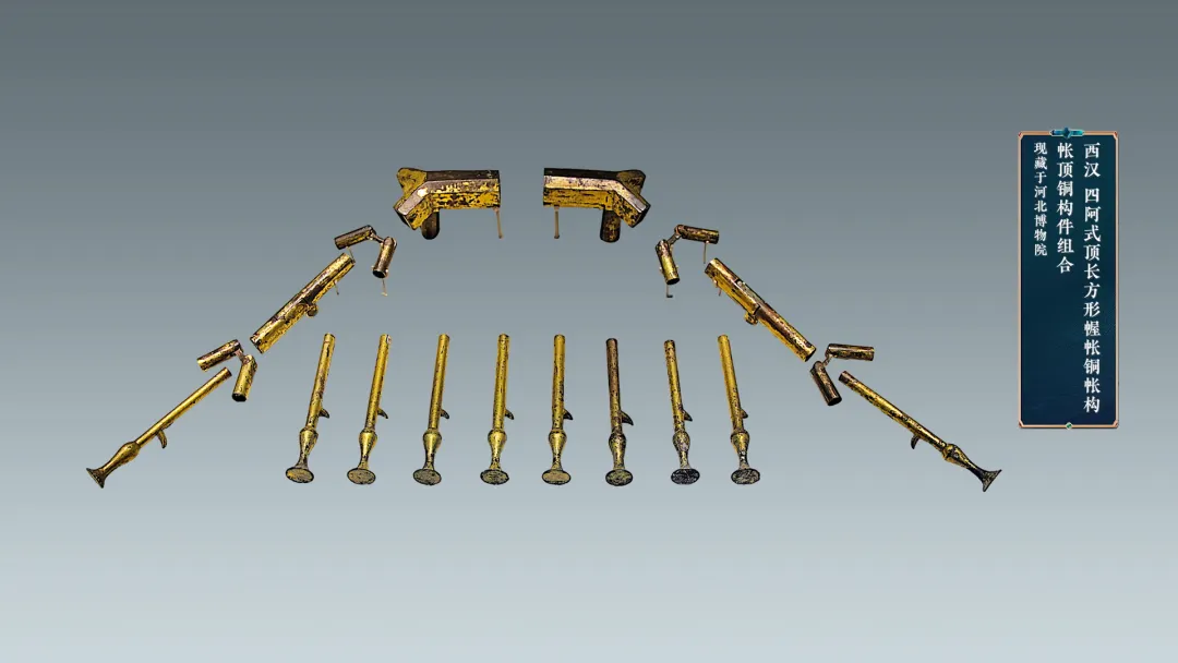 西汉鎏金铜帐构巧妙运用子母榫扣合等方式,将102个零件结合为一体,可将帷帐收拢,便于携带,与今天人们出去露营的帐篷如出一辙,古人和今人一样,对于出去游玩这事,都爱费心思下功夫。