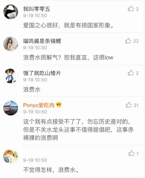 郭斌在微博中也说了,“其实这没用,咱得多方位加油”,不过还是有网友表示,爱国可以,用浪费水的方式,有点low。