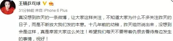 真没想到昨天的一条微博,让大家这样关注,不知道大家为什么不多关注昨天的日子,而是不断放大我们发的本意。十几年前的幼稚,昨天坦然说出来,没想到会是这样,真是幸苦大家这么关注!希望我们每天不要带着仇恨去看待身边发生的事情,祝好!
