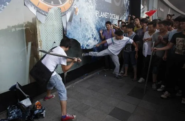2012年9月10日,日本政府不顾中方一再严正交涉,宣布“购买”钓鱼岛及其附属的南小岛和北小岛,实施所谓“国有化”。这一公然践踏中国主权的行为引发了中国民众的极大不满。国内爆发了大规模反日游行。但这一次反日游行中却出现了多次打砸抢行为,有日系车被砸,日式餐厅被砸,日系车4s店被砸,还有日企被烧。西安市民李建利驾驶日系车经过游行人群时,被21岁的小伙子蔡洋,就是上图那位,用U型锁砸穿了颅骨,至今没有完全恢复。
