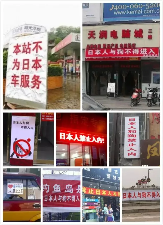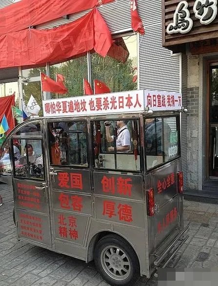 还有一些商家为了赚眼球,借着“爱国”的名义,公然打出侮辱性标语和招牌: