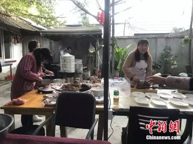 小辈们热火朝天地准备着饭菜。何佳欣摄