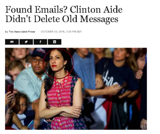 而韦纳的妻子正是希拉里的心腹,胡玛·阿贝丁(Huma Abedin)。FBI无意中从韦纳的电脑中发现了阿贝丁和希拉里来往的邮件。